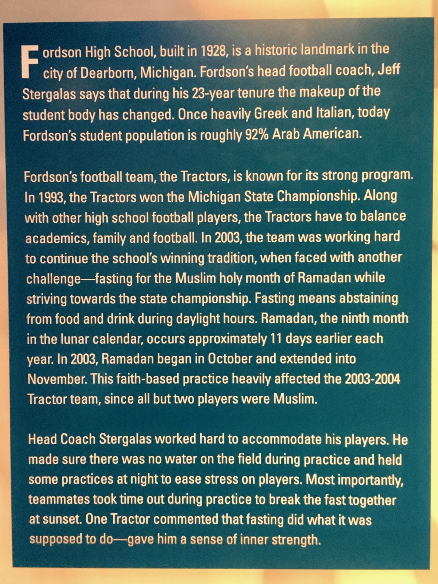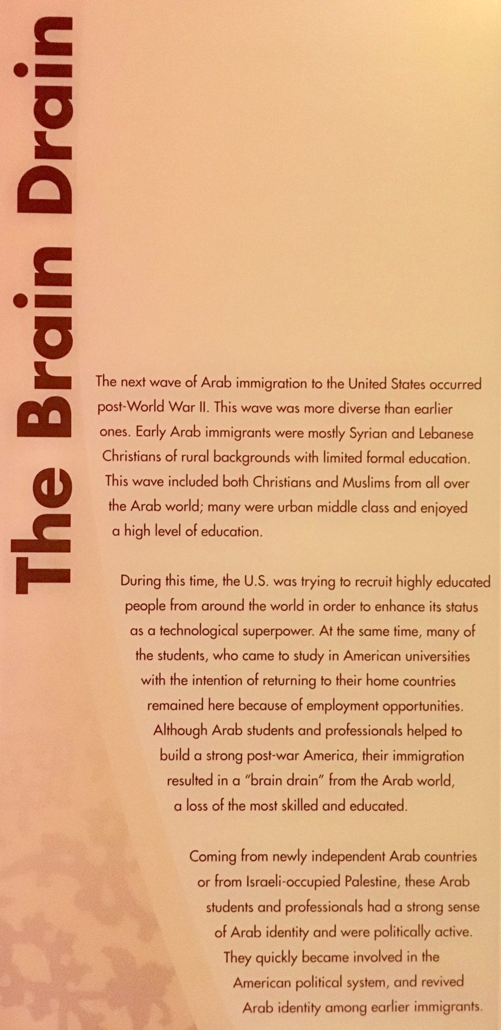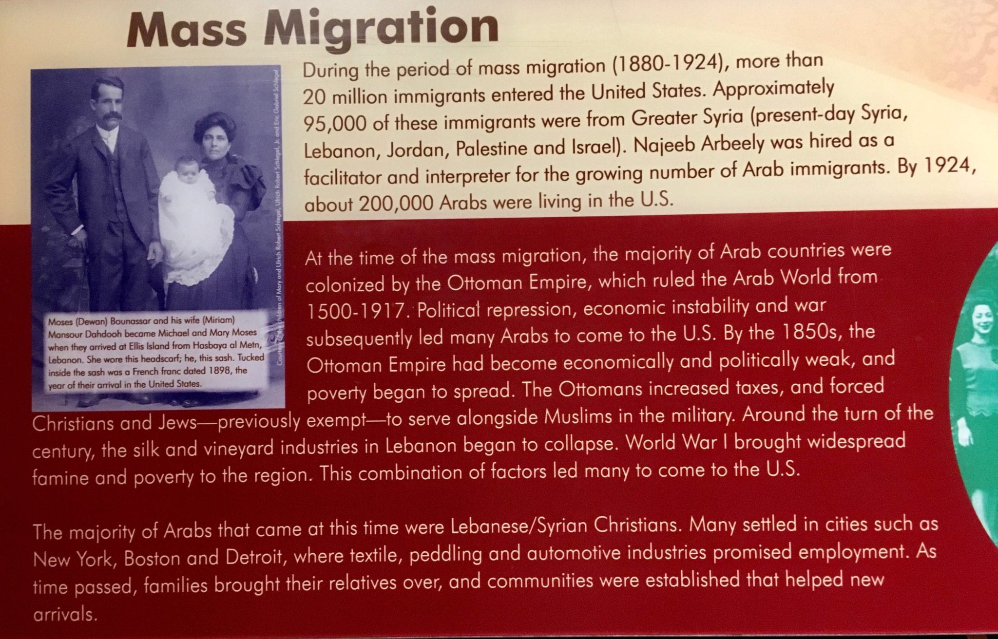 The Arab American National Museum opened in 2005 and is the only museum in the United States devoted to Arab American history and culture. It is affiliated with the Smithsonian.
