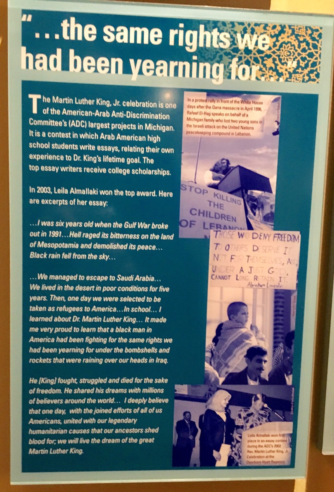 - From the Contributions of the Arab World courtyard. This panel featured Medicine, others featured Mathematics, Astronomy, Literature, Politics…