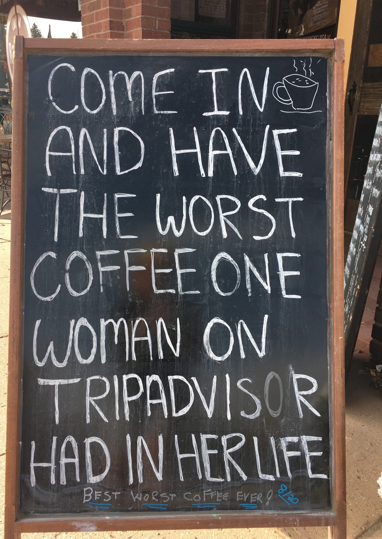 - The sidewalk sign at Rawhide Coffee