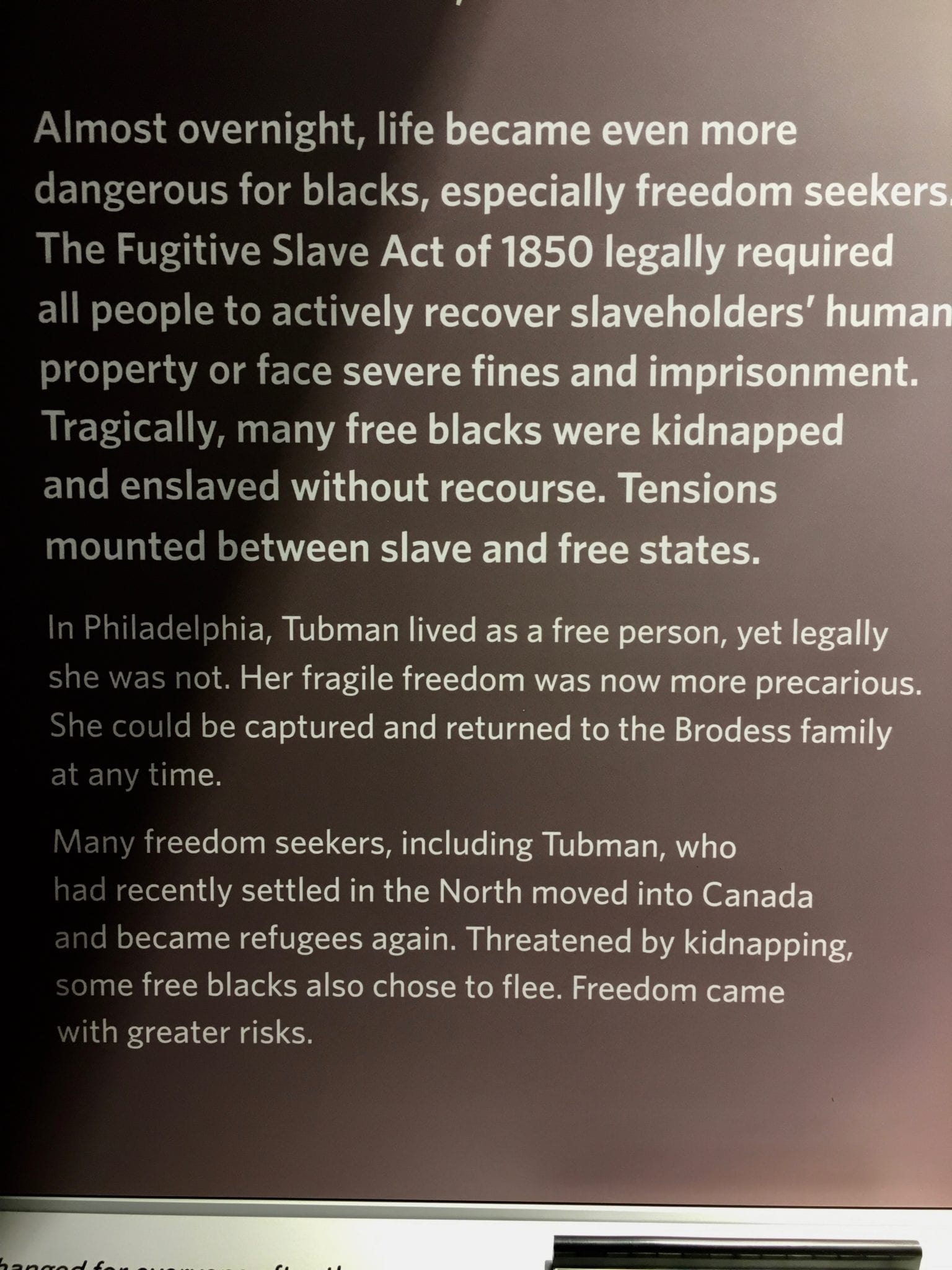 I apologize that there are not more images here. I was so caught up in understanding Harriet Tubman’s life story, that I was fixated on the signs.