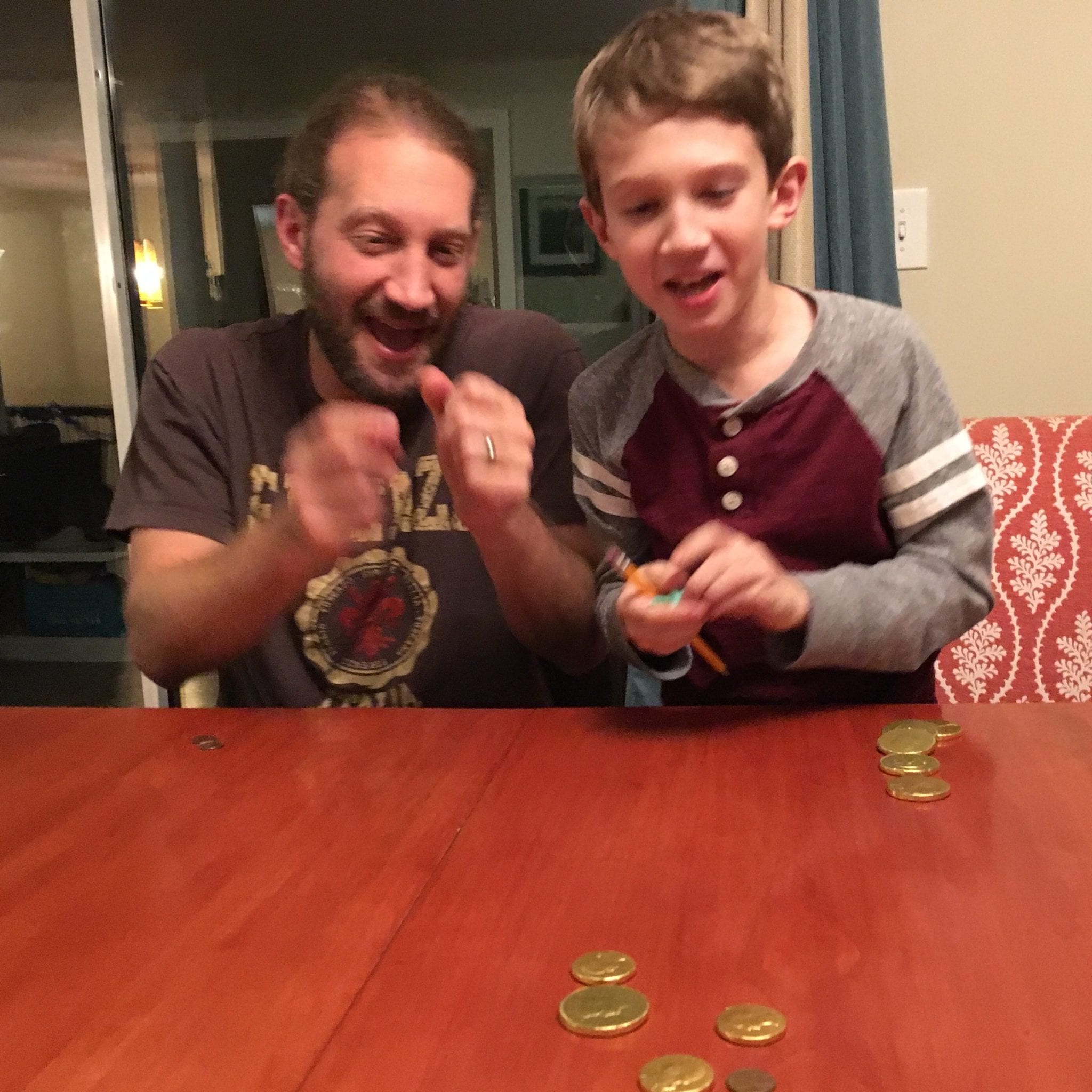 - My buddies Dave and Jacob spinning Hanukkah dreidels.