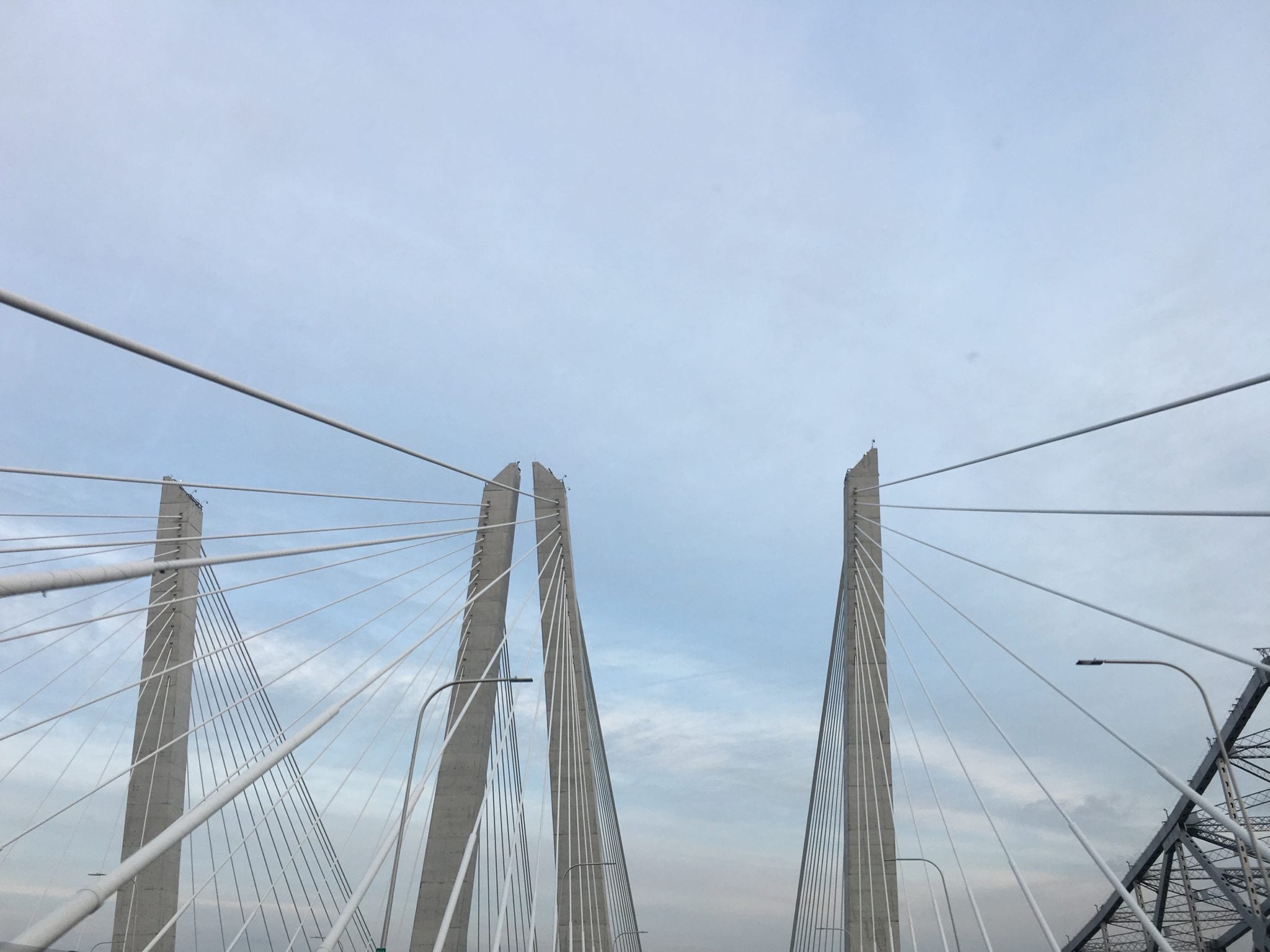 - The new Bridge left and center, an old part of the Tappan Zee Bridge to the right.