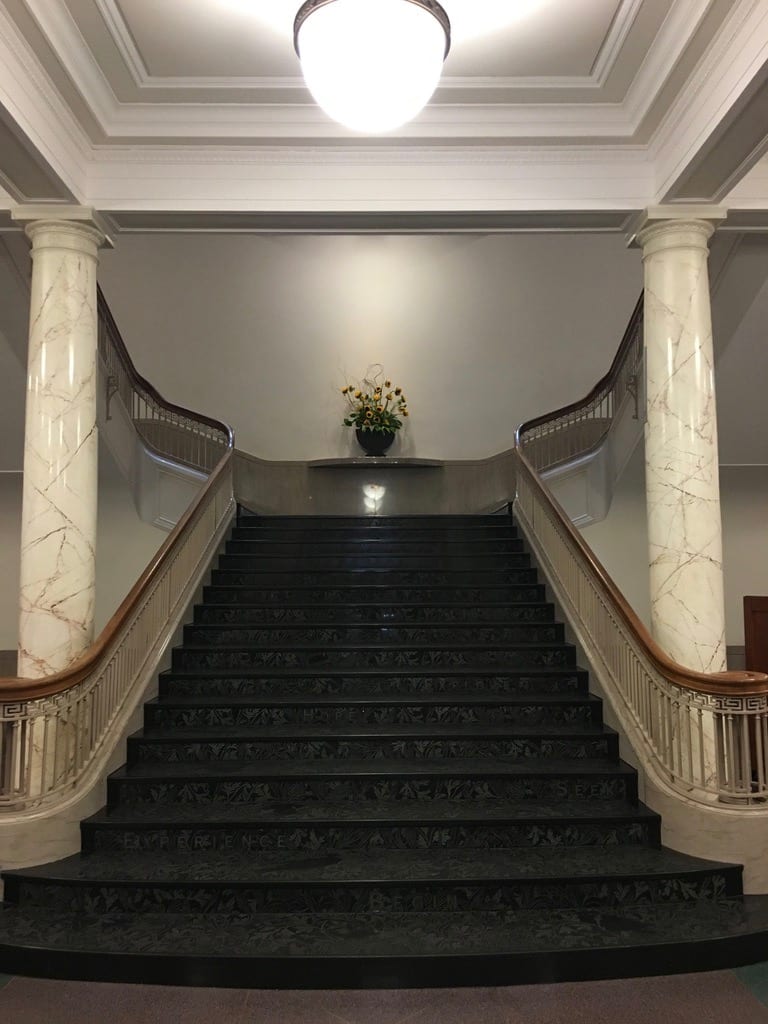 - Stairs at the gorgeous public library downtown. These stairs have some of my favorite verbs etched in them: Begin Experience Seek Hope Explore Dream Inquire Imagine Discover Create Transcend Become