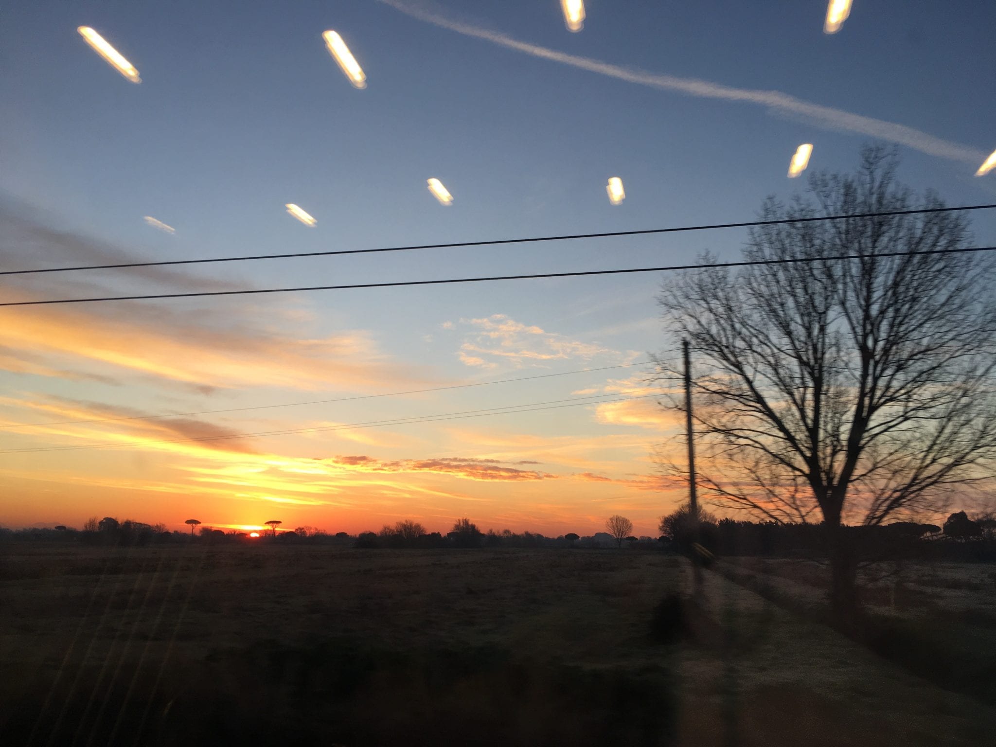 - Sunrise from the Leonardo Express train. I think the reflection of the fluorescent lights into the photo is kind of cool.