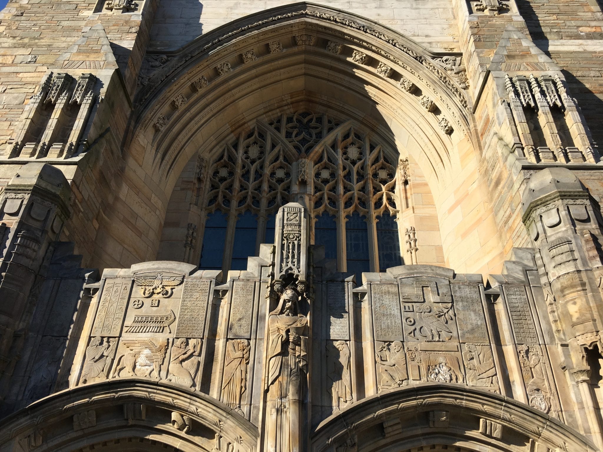 - From Wikipedia: “A relief above the library’s main entrance symbolizes the scholarly achievements of ancient civilizations. The scene depicts Cro-Magnon, Egyptian, Assyrian, Hebrew, Arab, Greek, Mayan, and Chinese scholars in low relief, with inscriptions from major works in each writing system.”