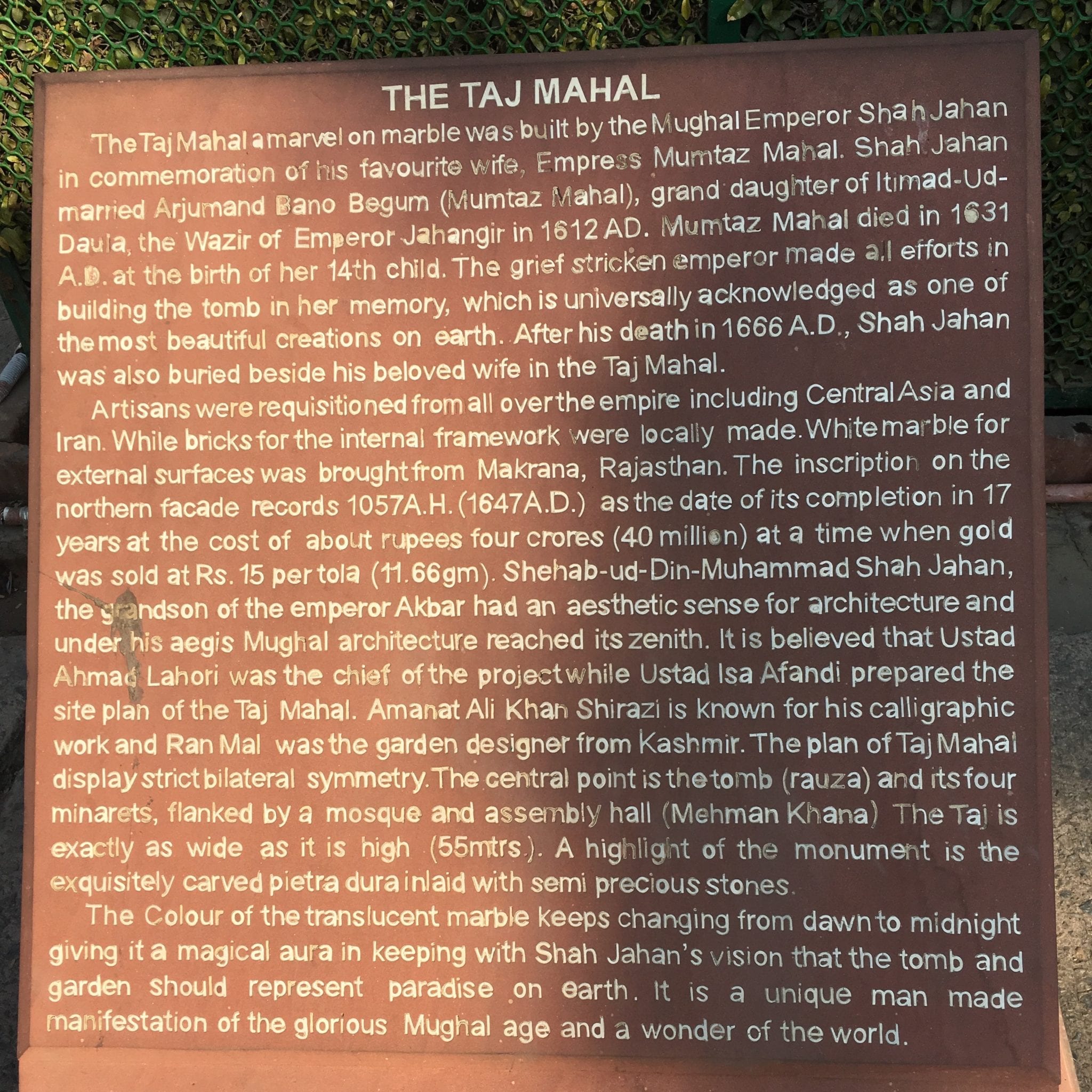 - Taj Mahal – Mosque Paving Stone