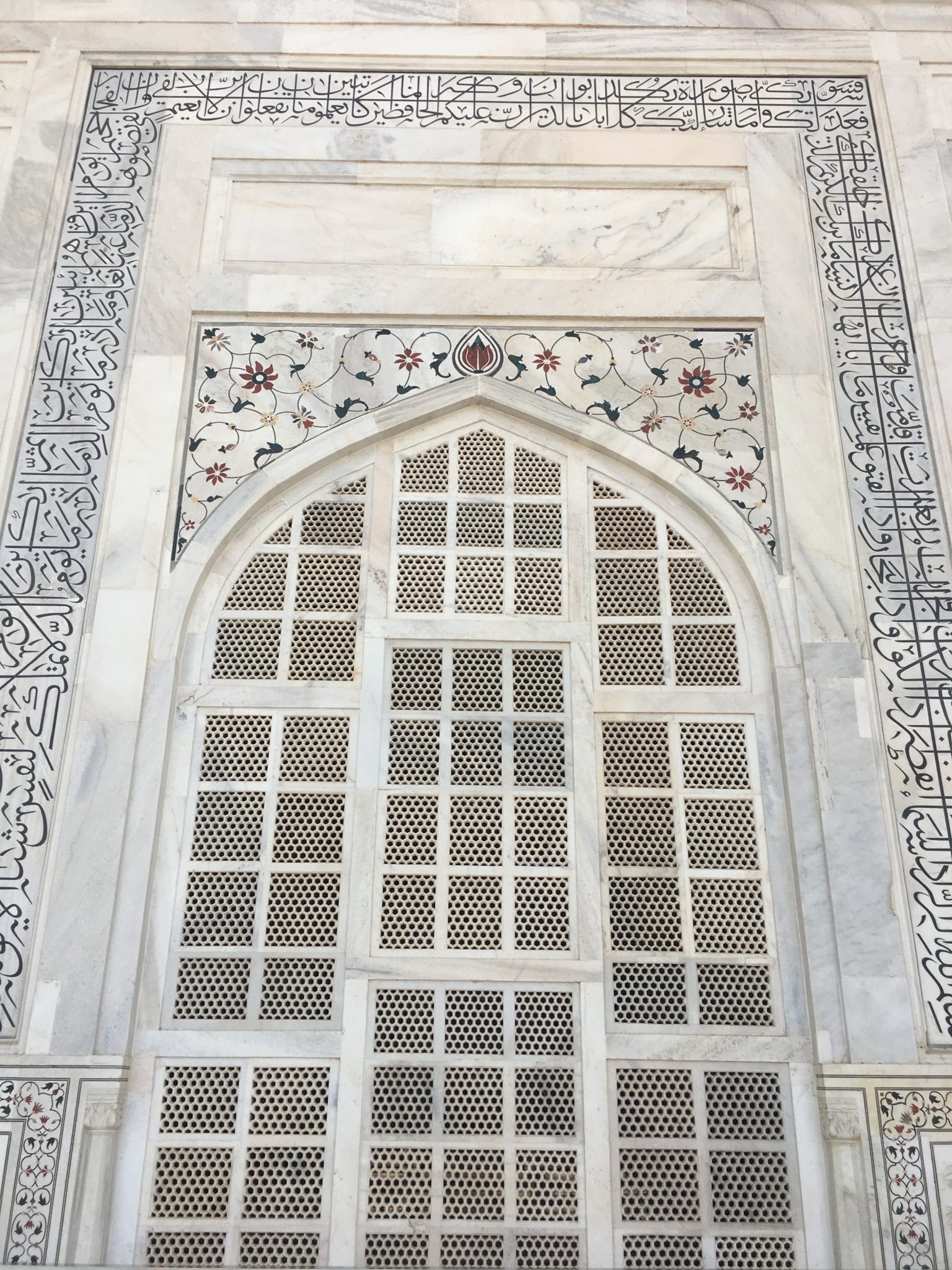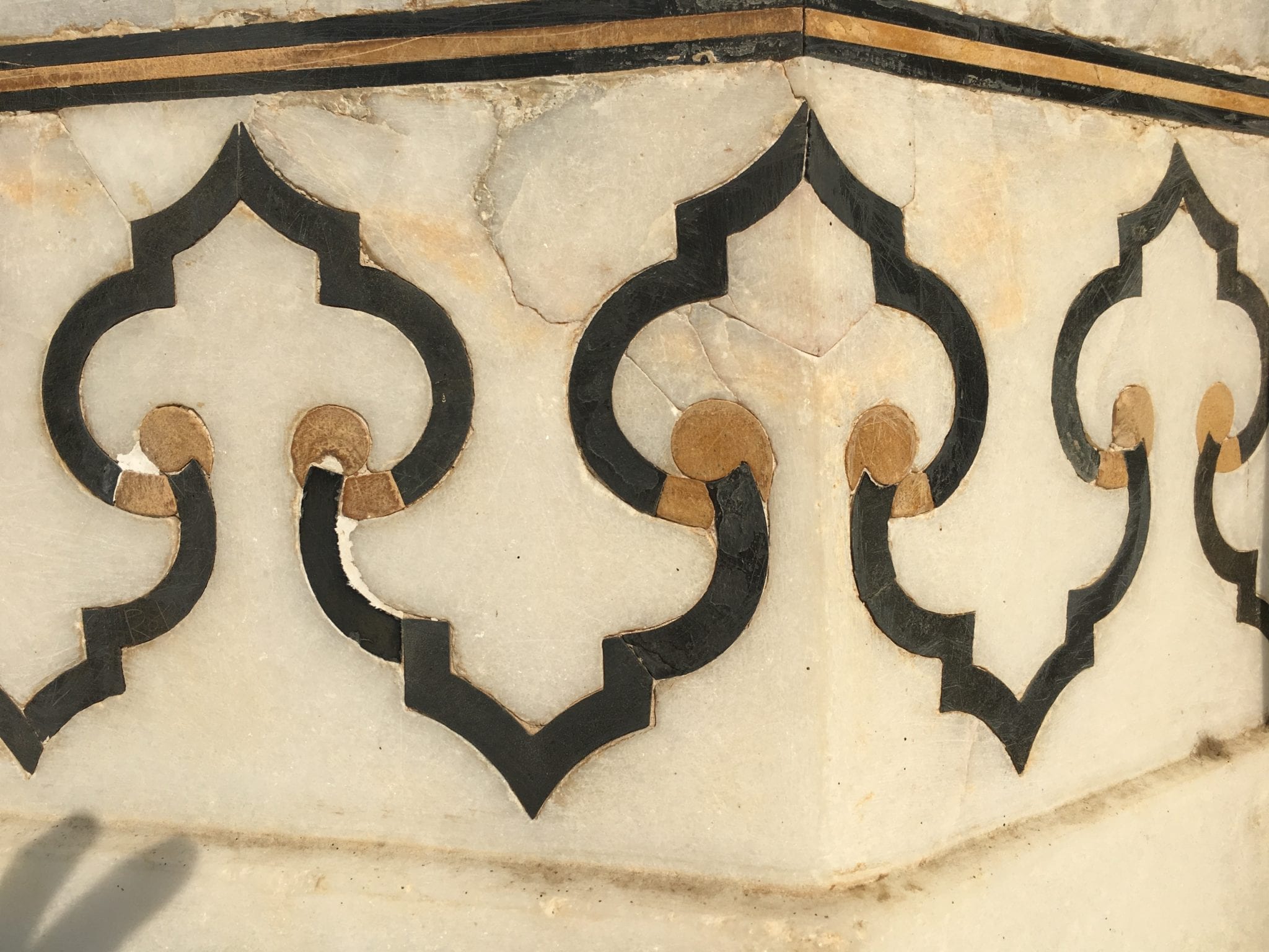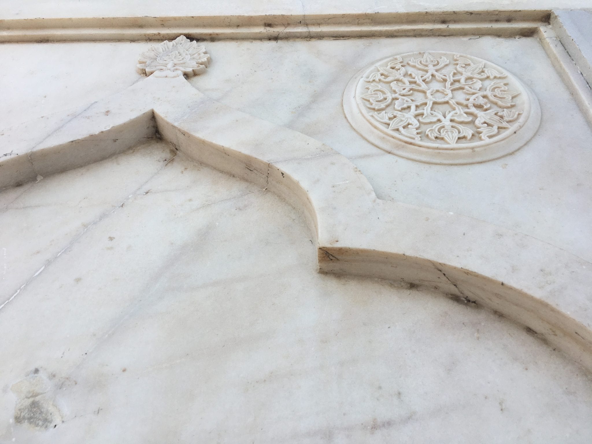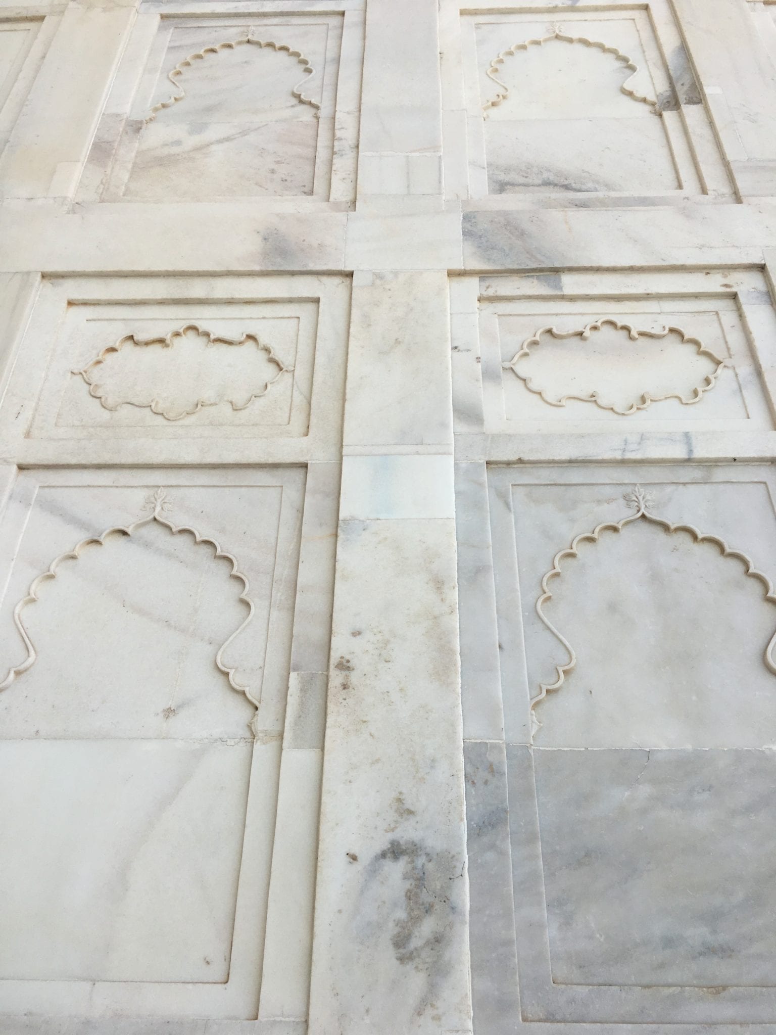 - Taj Mahal Mausoleum. These are similar shapes to the markings on the floors of mosques to delineate prayer spots, but they are carved in the wall here.