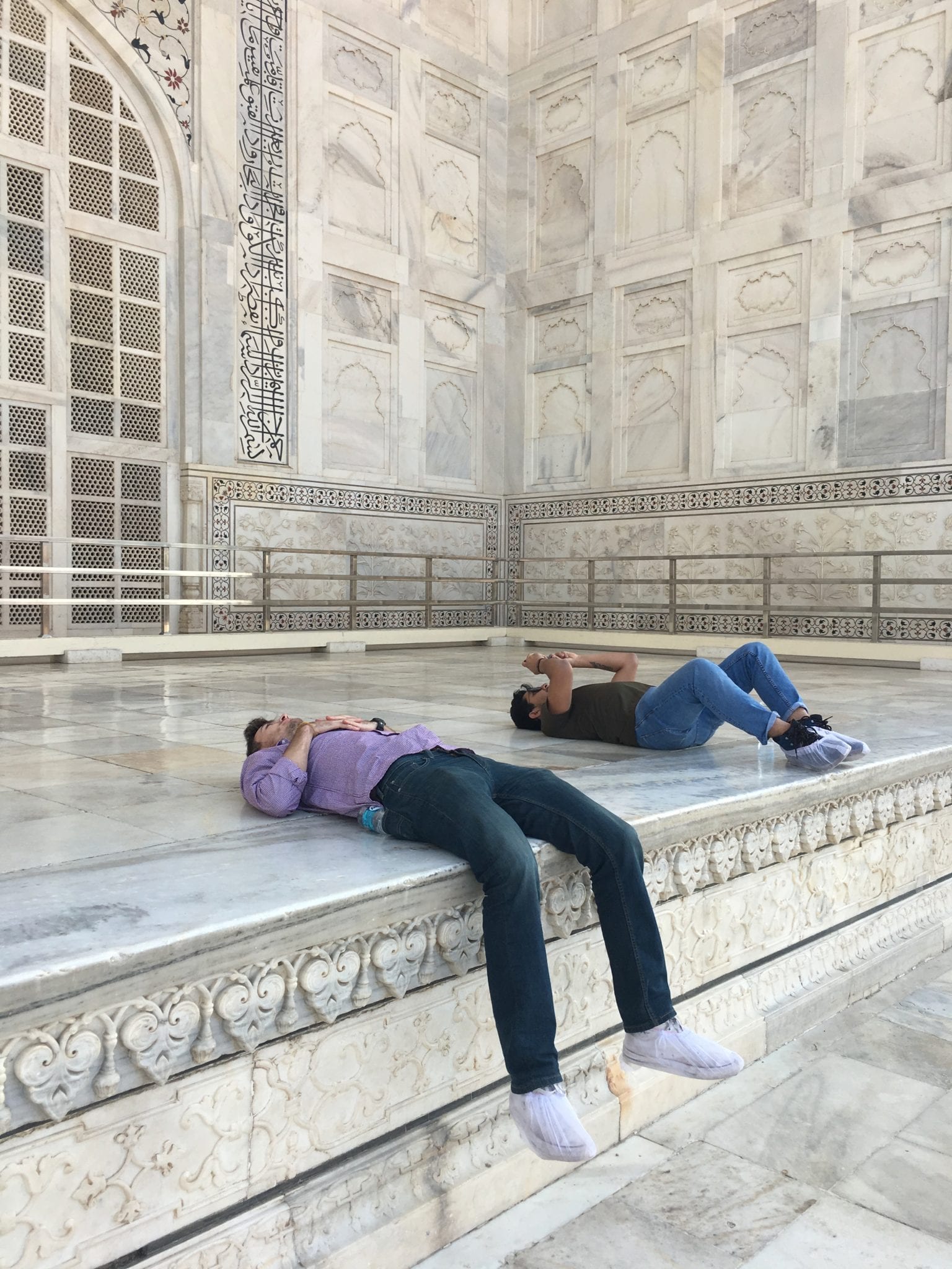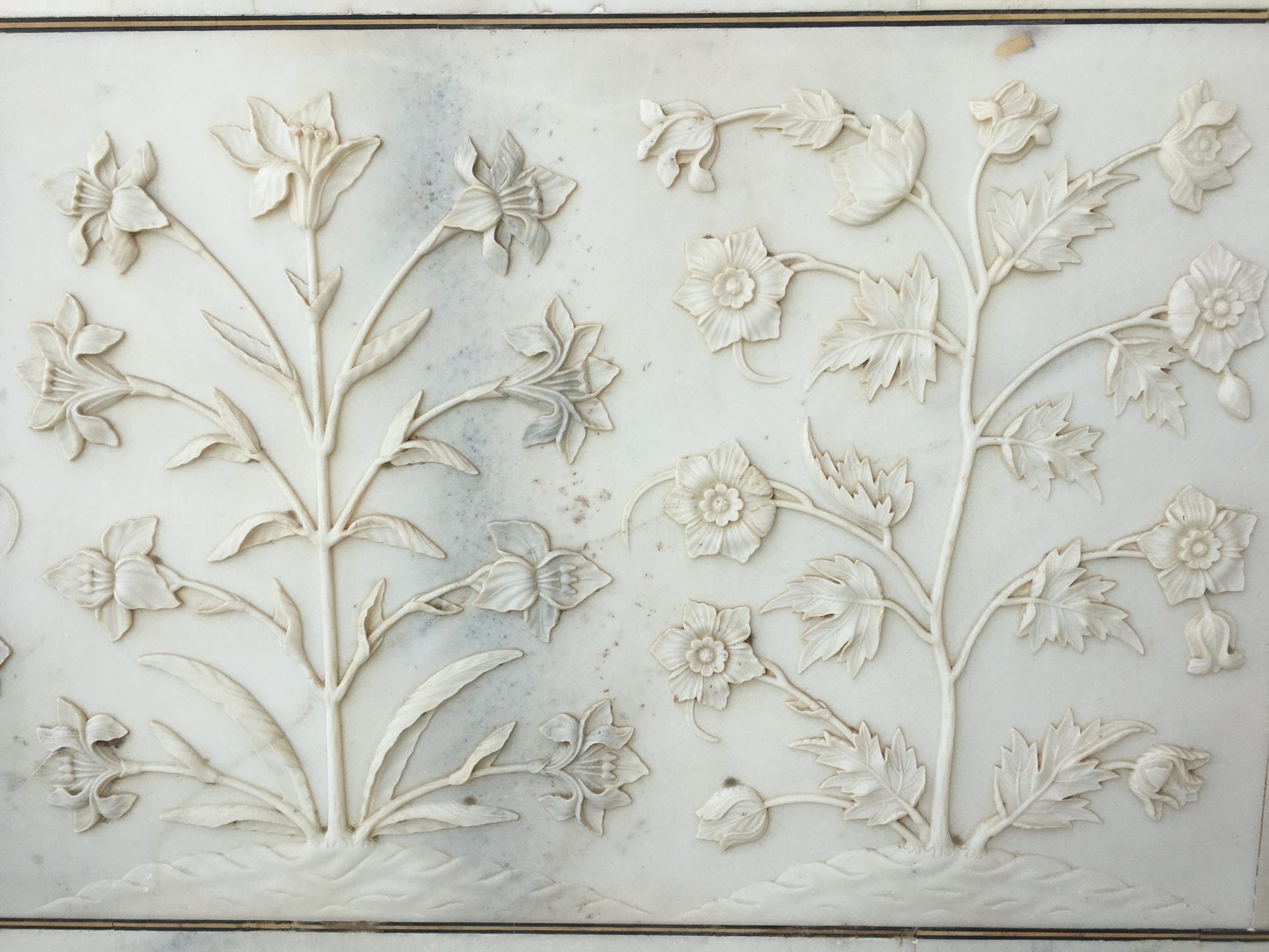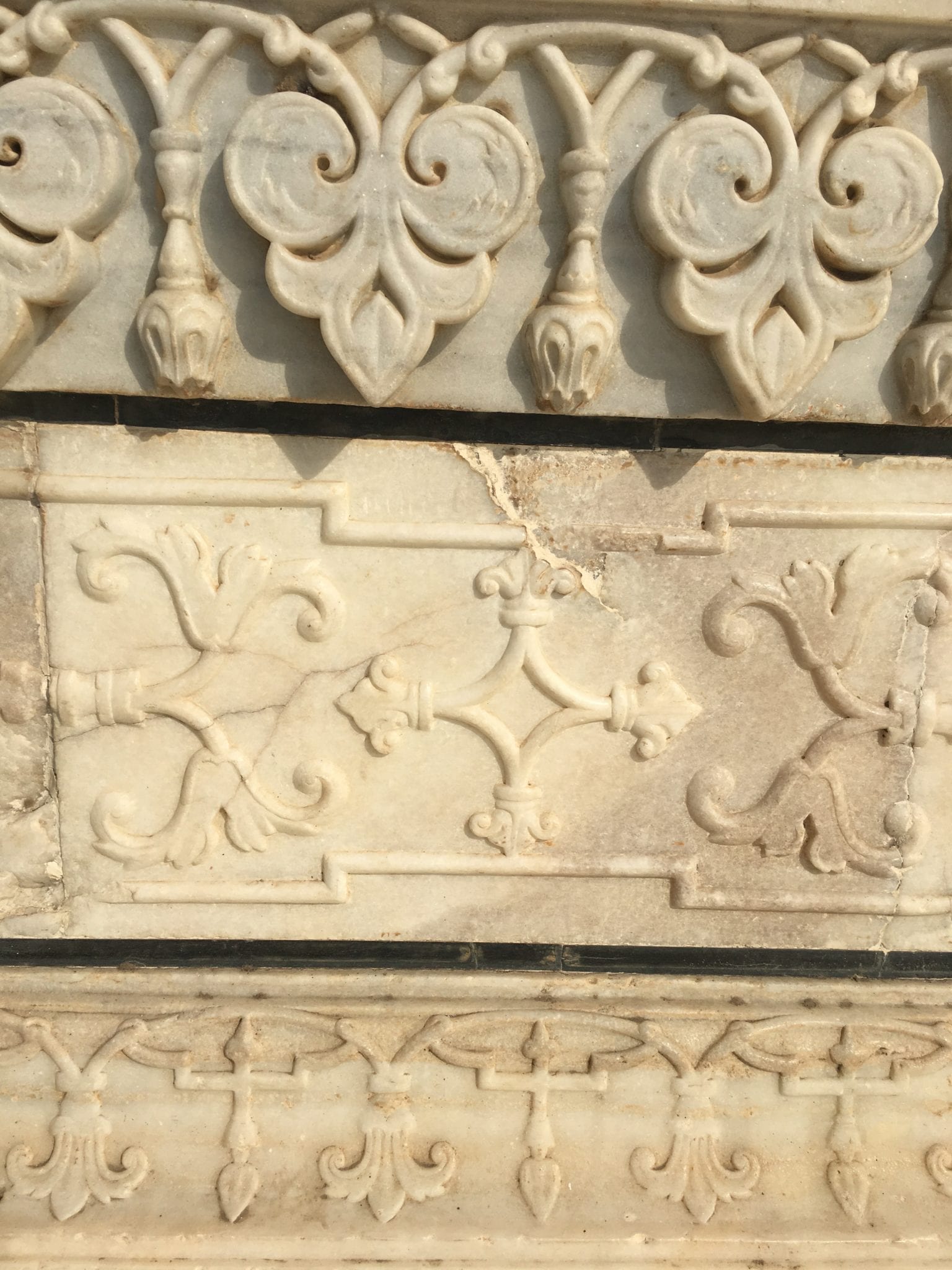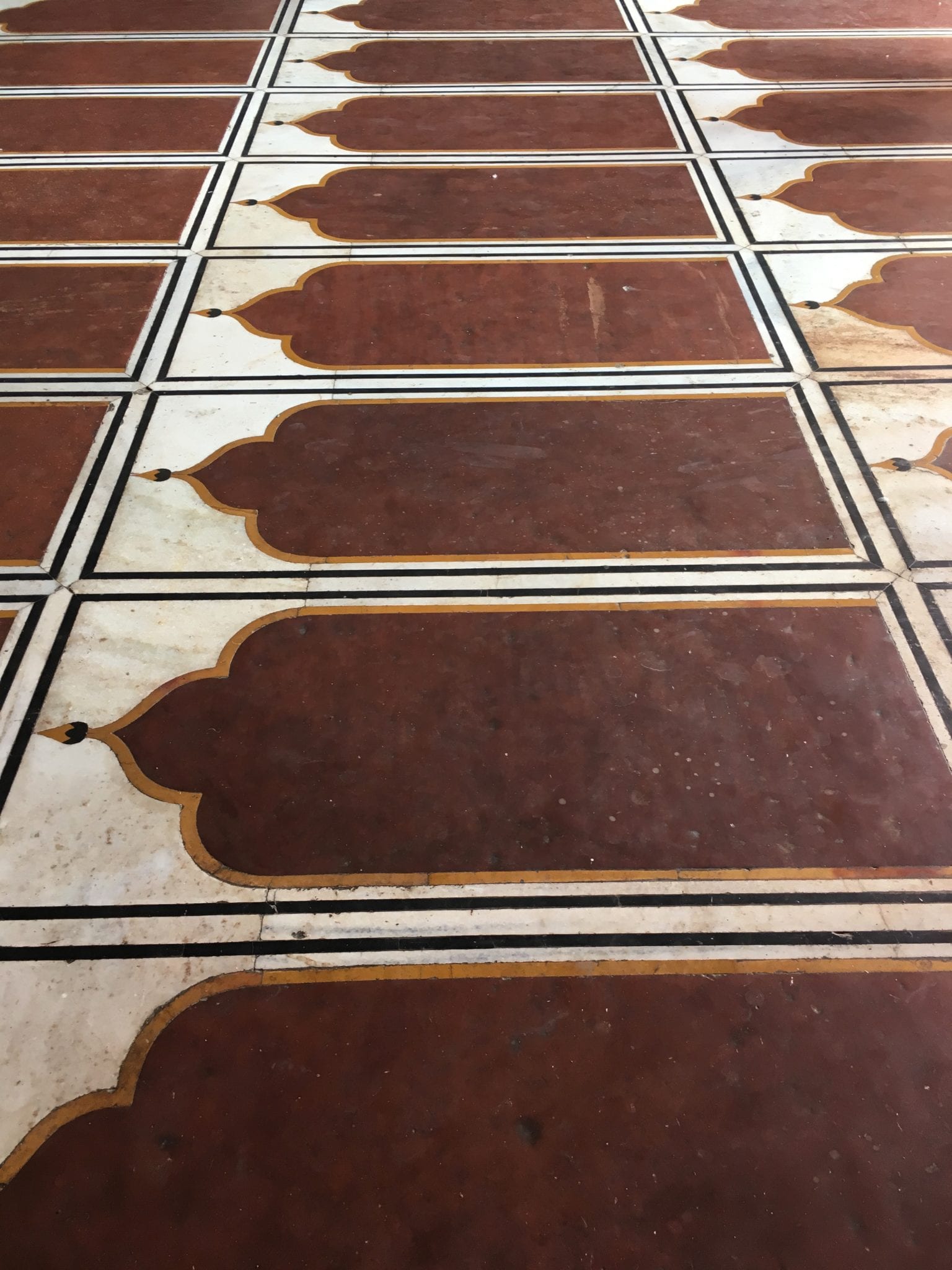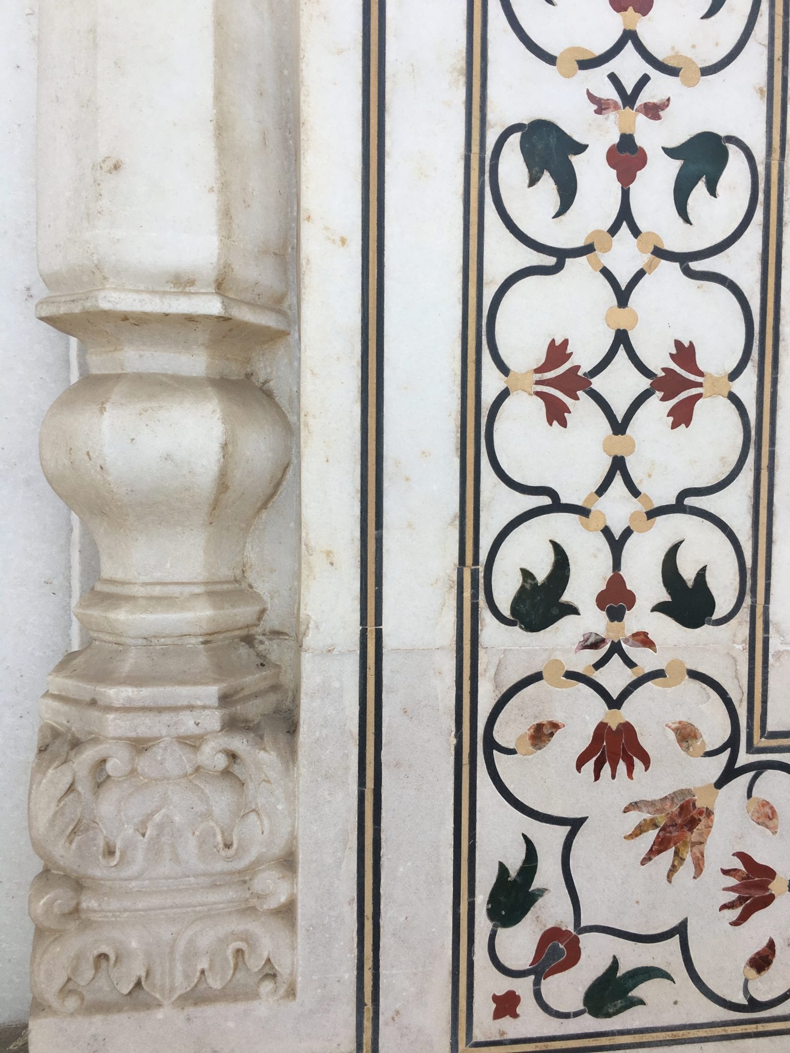 - Taj Mahal Mausoleum. These are similar shapes to the markings on the floors of mosques to delineate prayer spots, but they are carved in the wall here.