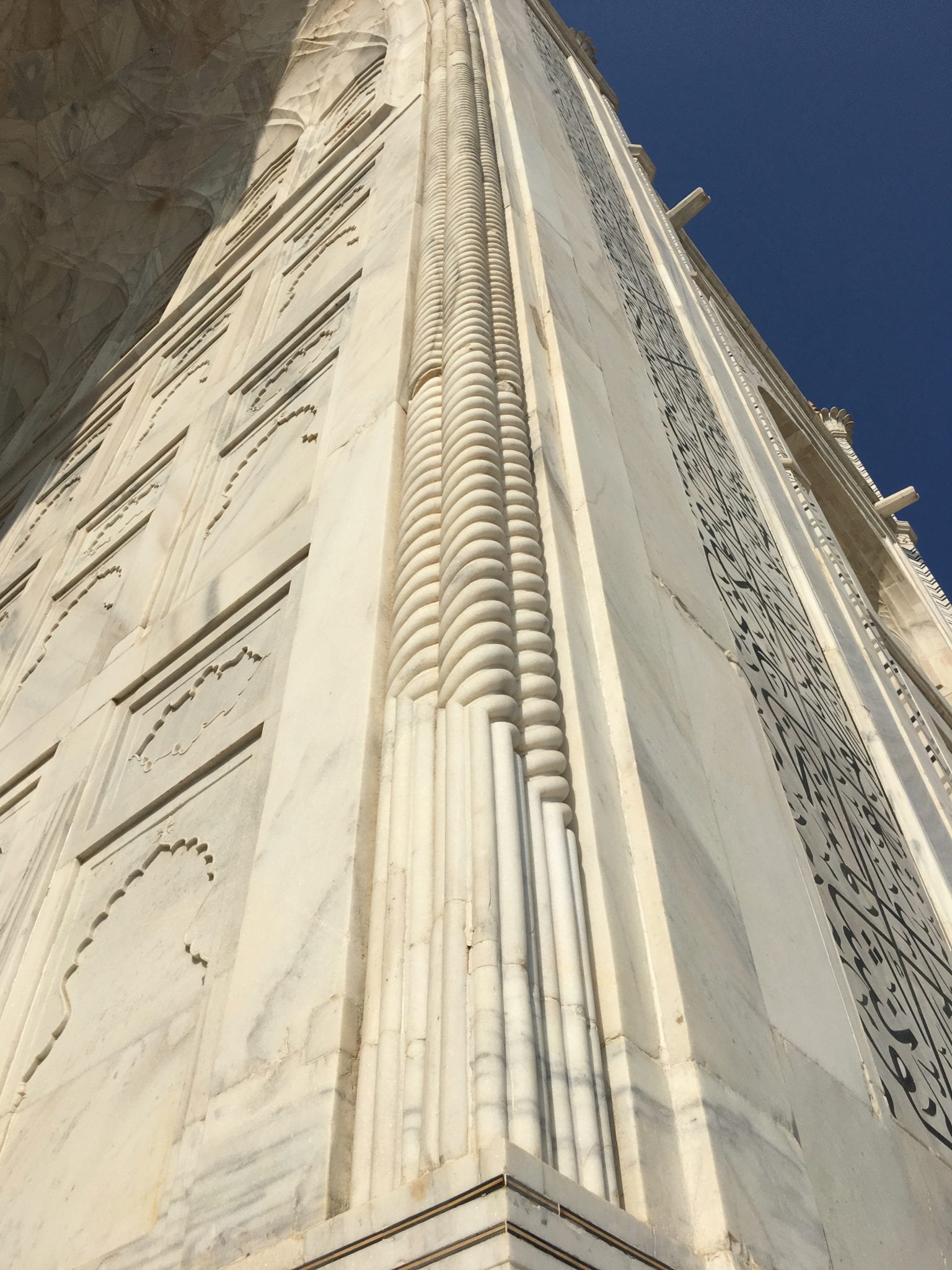 - Taj Mahal Mausoleum This is one photograph, not three spliced together. These three layers of carved designs are actually layered at the base (!) of the exterior walls.