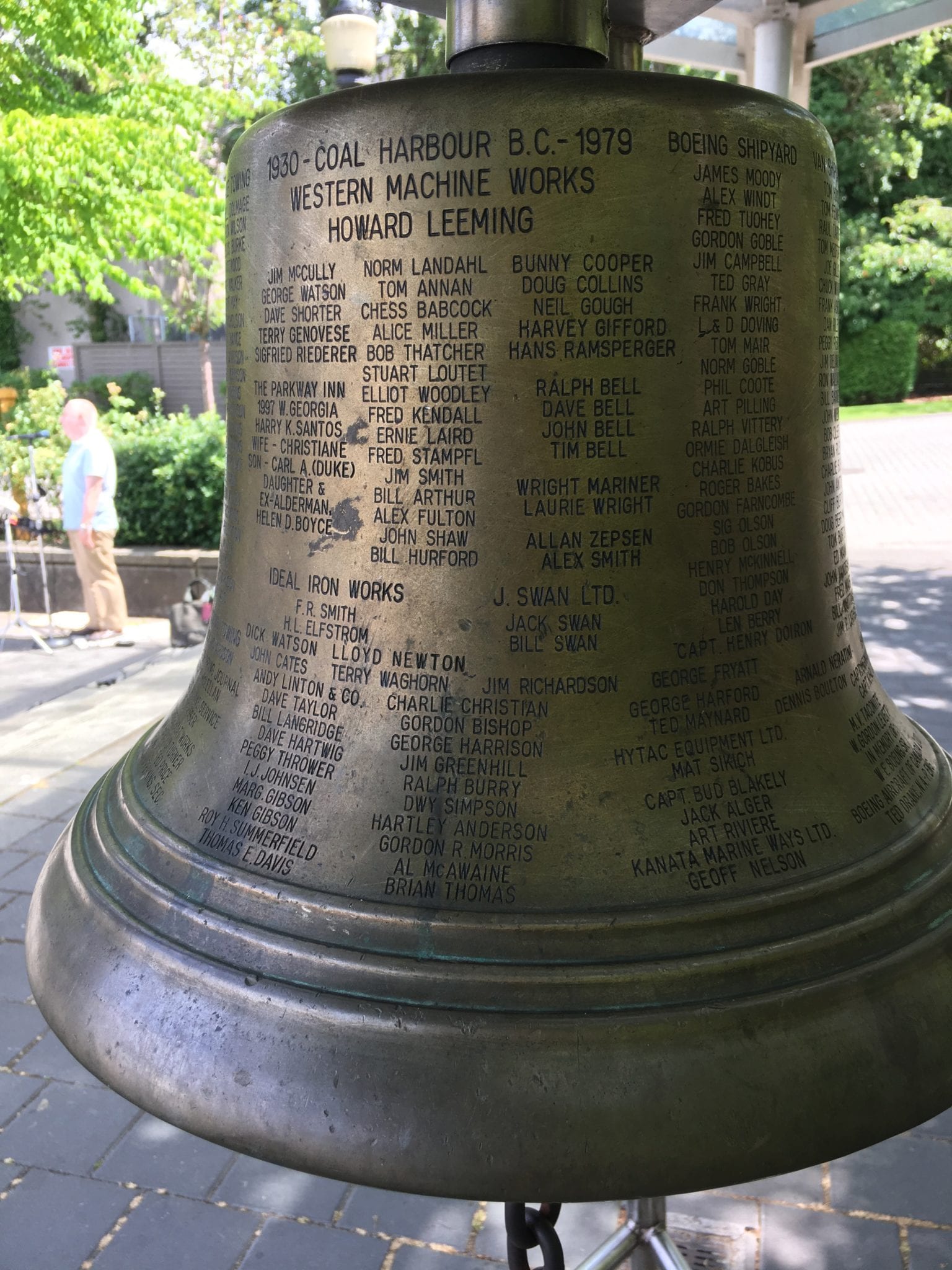 - Coal Harbour Fellowship Bell. From waymarking.com “This bell has been engraved to honour those many companies and individuals who over the years of 1891-1979 were to make up the fabric of Coal Harbour’s long history. Coal Harbour consisted of many services, from shipyards, engine and propeller shops, to all the other trades between. The work force was recognized nation wide for its expertise in construction and repairs to the major portion of Vancouver’s fishing and tugboat fleets.”