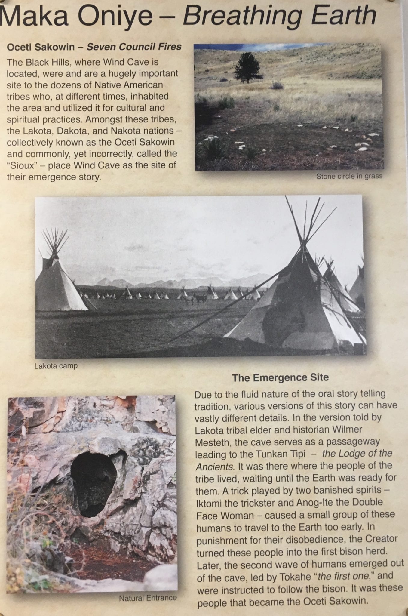 - Wind Cave was the place of these Native peoples’ creation story. It was that sacred!