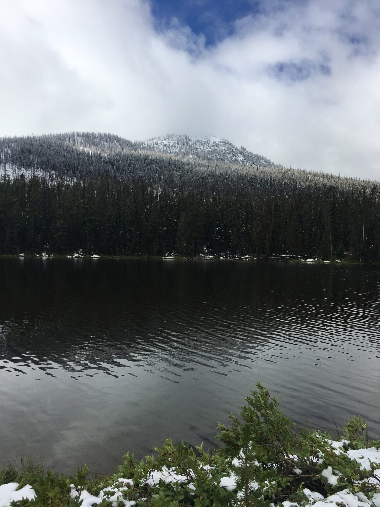 - Snow in August!! I planned to spend three days in Yellowstone but the east entrance was closed the first day because of snow and ice on Sylvan pass. I got to see it first thing the next morning before it melted. The winter wonderland was enchanting. Absaroka Mountains, Sylvan Lake